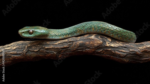 © Andi, Fototapeta premium Venomous green snake resting on a branch.
