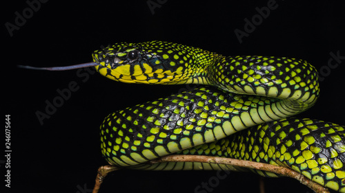 Naklejka premium Venomous pitviper (Trimeresurus sumatranus malcolmi) , Nature close-up image of Venomous Pitviper