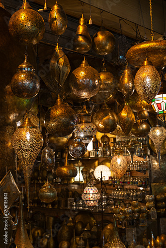 © Lola Fdez. Nogales, Fototapeta premium Venta de lámparas típicas en zoco de Marruecos.