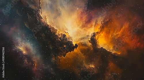 © Thiago, Naklejka premium Venture into the infinite expanse of space and behold the vibrant colors of a space galaxy cloud nebula,. Infinite. Illustration