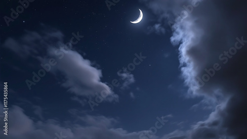 Obraz premium Venus glowing in the night sky with a crescent moon against a starry background.
