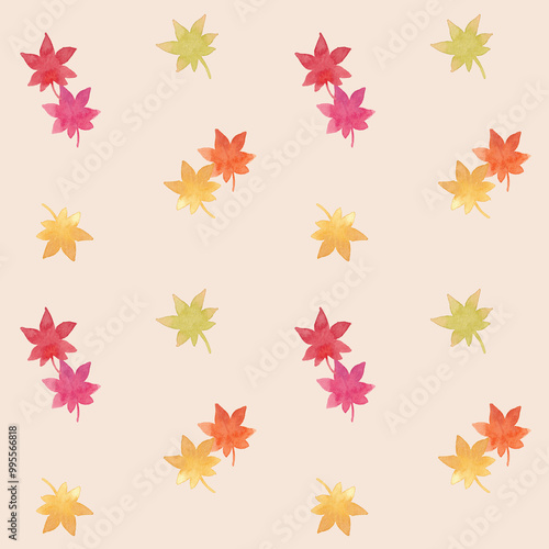 © 朋代 三浦, Obraz premium 紅葉のシームレスパターン 背景ベージュver