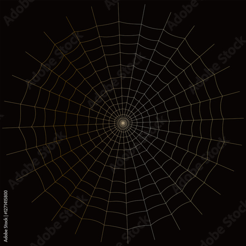 © SAIGLOBALNT, Obraz premium 年輪のような円網型リアル蜘蛛の巣テクスチャーVer.2-Circleweb(メタリックシルバーゴールドカラー・黒背景)
