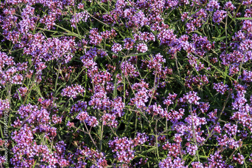 Naklejka premium Verbena bonariensis flowering in a vibrant purple summer garden