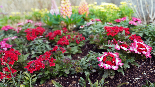 © nana, Fototapeta premium Verbena Flowers Growing in Soil
