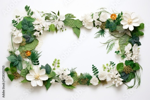 Naklejka premium Verdant Botanical Frame: Fresh Floral Elegance on Pristine White - Generative AI
