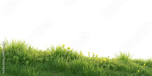 © snesivan, Naklejka premium Verdant Hill Blooming with Yellow Flowers in Spring. 3D render.