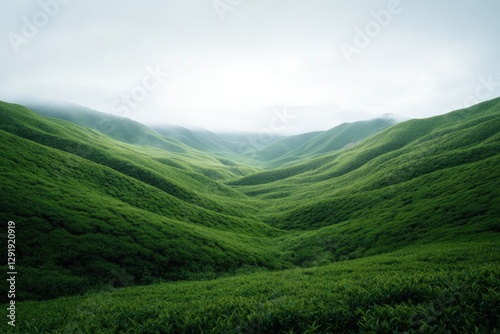 © Riya, Naklejka premium Verdant hills in morning mist