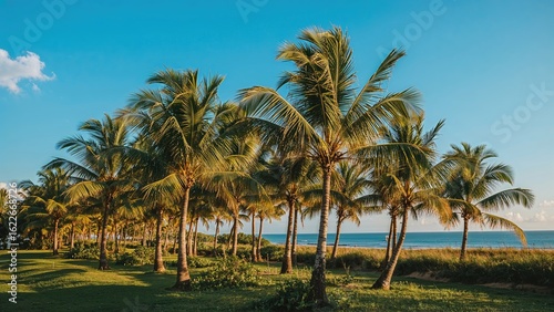 © TheWaterMeloonProjec, Obraz premium Verdant space adorned with palms