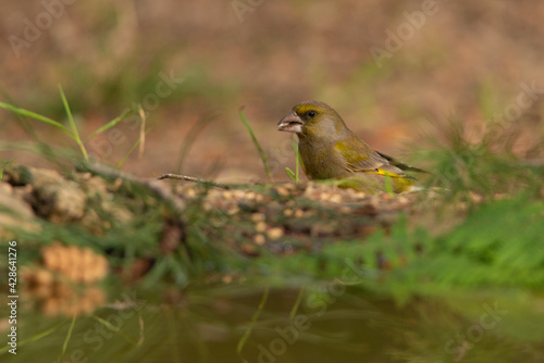 © JOSE ANTONIO, Fototapeta premium verderón común en el suelo del parque (Chloris chloris)
