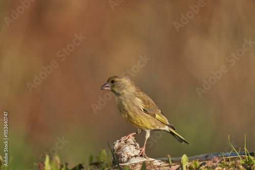 © JOSE ANTONIO, Fototapeta premium verderón europeo o verderón común​ (Chloris chloris)​ posado en un tronco