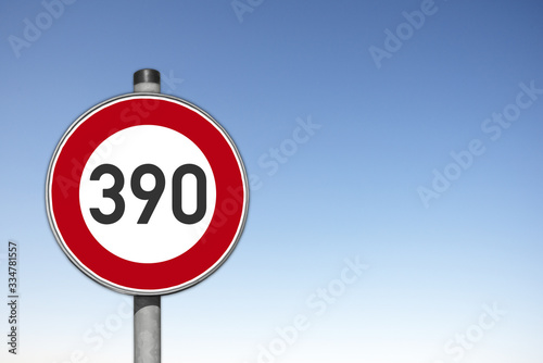 Obraz premium Verkehrsschild, erlaubte Höchstgeschwindigkeit, 390 km/h,