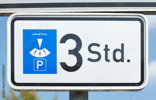 Obraz premium Verkehrsschild Parkplatzschild, parken mit Parkscheibe