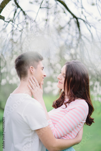 Fototapeta premium Verliebtes Paar unter blühendem Baum