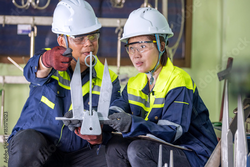 Obraz premium Vernier Caliper: Two Engineers Teamwork Performing Anchor Inspection for...