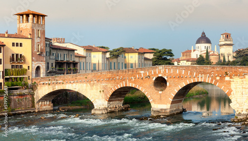 Obraz premium Verona. Ponte Pietra sul fiume Adige.