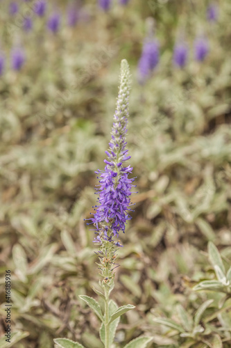 Obraz premium Veronica gray (Veronica incana) in the garden on a blurred background
