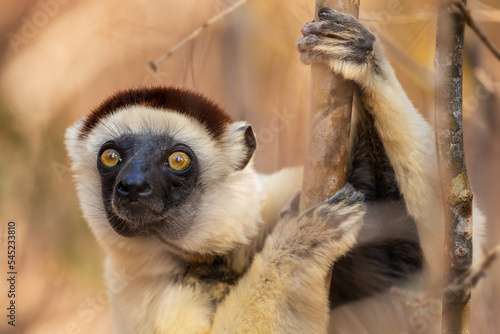 Fototapeta premium Verreaux's Sifaka - Propithecus verreauxi, dry forest Madagascar west coast,...