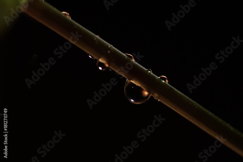 © Stefan F. Wirth, Naklejka premium Verschieden große Wassertropfen an Pflanzenstiel