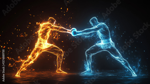 © Ruhi, Fototapeta premium Versus VS signs with glow and sparks, game or sport confrontation symbols on black background with glowing sparkles. Martial arts combat, fight, battle competition challenge, Realistic 3d vector set