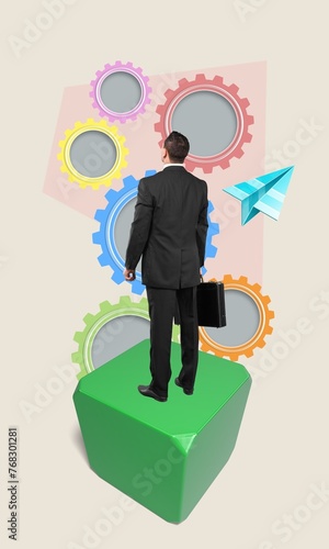 Obraz premium Vertical abstract collage of businessman on platform