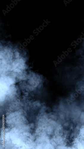 © Victor, Obraz premium Vertical abstract smoke misty fog on isolated black background. Blue smoke effect overlays. Design texture element.