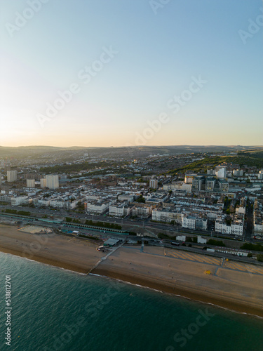 Fototapeta premium Vertical aerial photo sunset over Brighton Beach UK