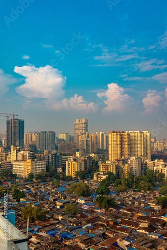 Fototapeta premium Vertical aerial view of modern buildings and houses in Mumbai, India