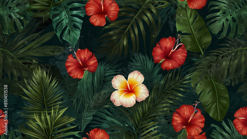 © Flain, Naklejka premium vertical background of tropical leaves. generative ai