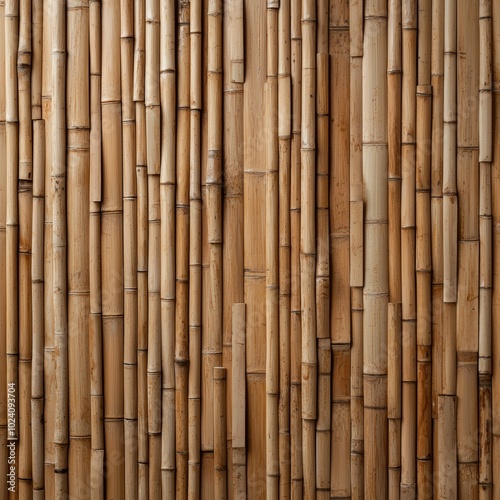 Fototapeta premium Vertical bamboo stalks tightly arranged create a natural brown textured background, ideal for organic and eco-friendly themes.