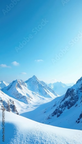 Fototapeta premium Vertical blue background with a hint of snowy peaks, sky, frosty, open