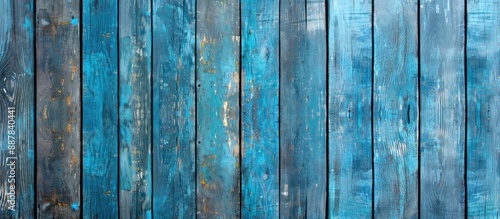 © vxnaghiyev, Naklejka premium Vertical blue wood panel with copy space image for background texture
