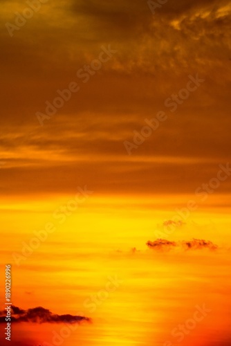 Fototapeta premium Vertical composition of a deep orange sunset sky with layered clouds.