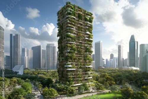 © Adri, Obraz premium Vertical garden skyscraper in urban setting