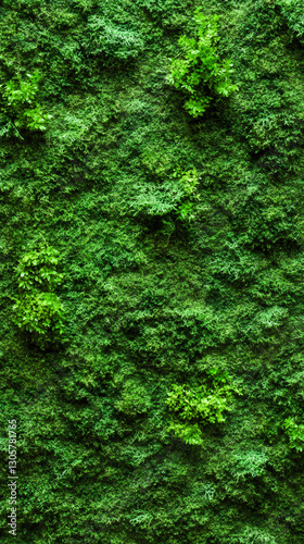 Fototapeta premium Vertical garden with various types of green plants growing on a wall, creating a lush and natural backdrop