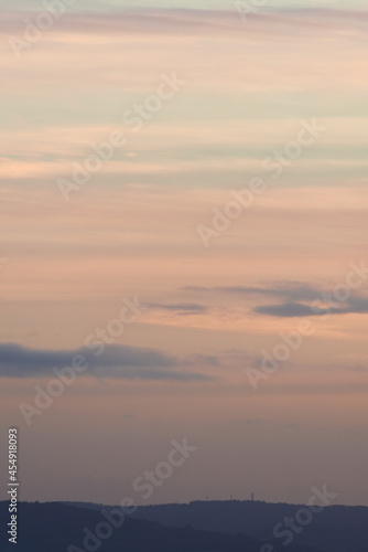 Obraz premium Vertical hazy sunset. Horizon under warm and faded pastel colours.