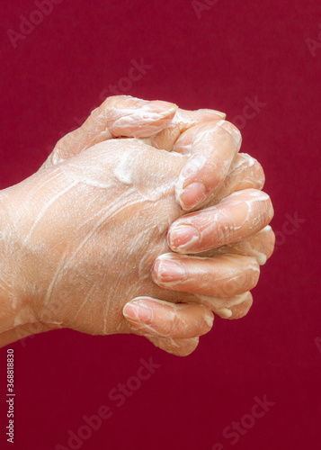 © ARVD73, Fototapeta premium Vertical image Side view Wash your hands. Health cleanliness concept.