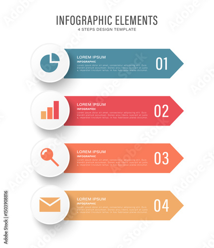 © Лилия Агапова, Fototapeta premium Vertical infographic template with arrows and icons. Four steps, options or processes