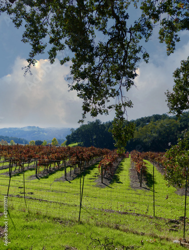 © Heidi Patricola, Naklejka premium vertical landscape of autumn vineyards in the countryside