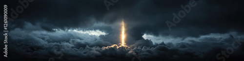 Obraz premium Vertical Light Beam Through Storm Clouds