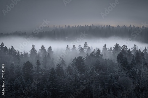 © AkuAku, Obraz premium Vertical panorama of a single-color snowy forest in winter