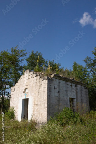 © evannovostro, Fototapeta premium Vertical photo of abandoned Russian Church