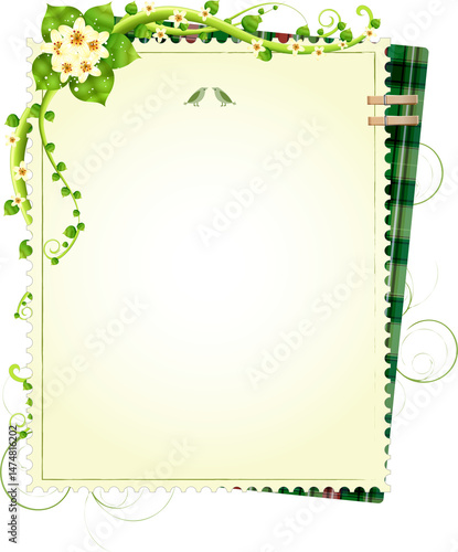 Obraz premium Vertical Plaid Border Frame with Floral Decor