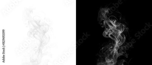 © Tania, Fototapeta premium Vertical plume of white smoke rising against black and transparent backgrounds
