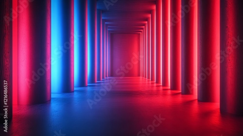 © Aisha, Fototapeta premium Vertical red and blue pillars arranged in an abstract pattern, futuristic wallpaper with smooth gradients and modern lighting