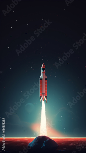 Fototapeta premium vertical rocket takeoff narrow high panoramic computer design graphics...