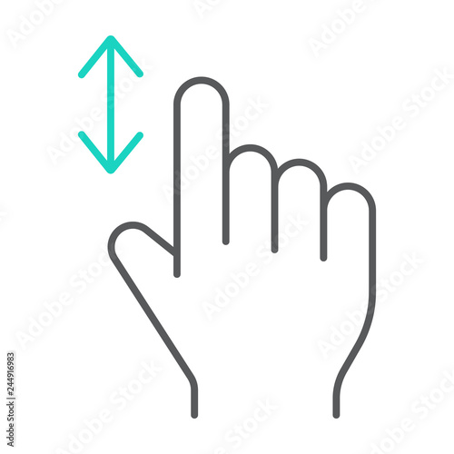 © amin268, Obraz premium Vertical scroll thin line icon, finger and gesture, hand sign, vector graphics, a linear pattern on a white background.
