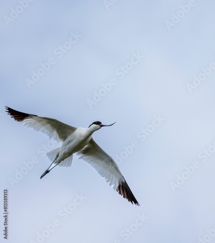 Fototapeta premium Vertical shot of a pied avocet bird in flight