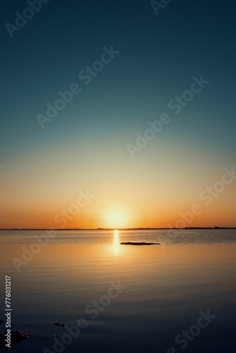 Fototapeta premium Vertical shot of sunset time over the horizon