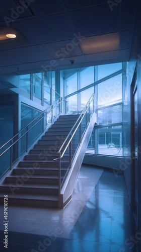 © pier, Obraz premium vertical staircase view in empty back office wing with sterile atmosphere